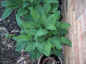 Westside story is the bed on the westside of the house with “Royal Standard”, “Guacamole” and “Elegans”. Last fall I divided three Hyacinth hostas into 18 gallon size new starts. We also have what I refer to as the hospital bed for varieties I tried to introduce and later struggled. Those varieties include “SunPower”, “Rainforest Sunrise”, “Remember Me”, “Fireworks” and “Golden Edge”. “Fire and Ice” is on the casualty list after three attempts in various beds.