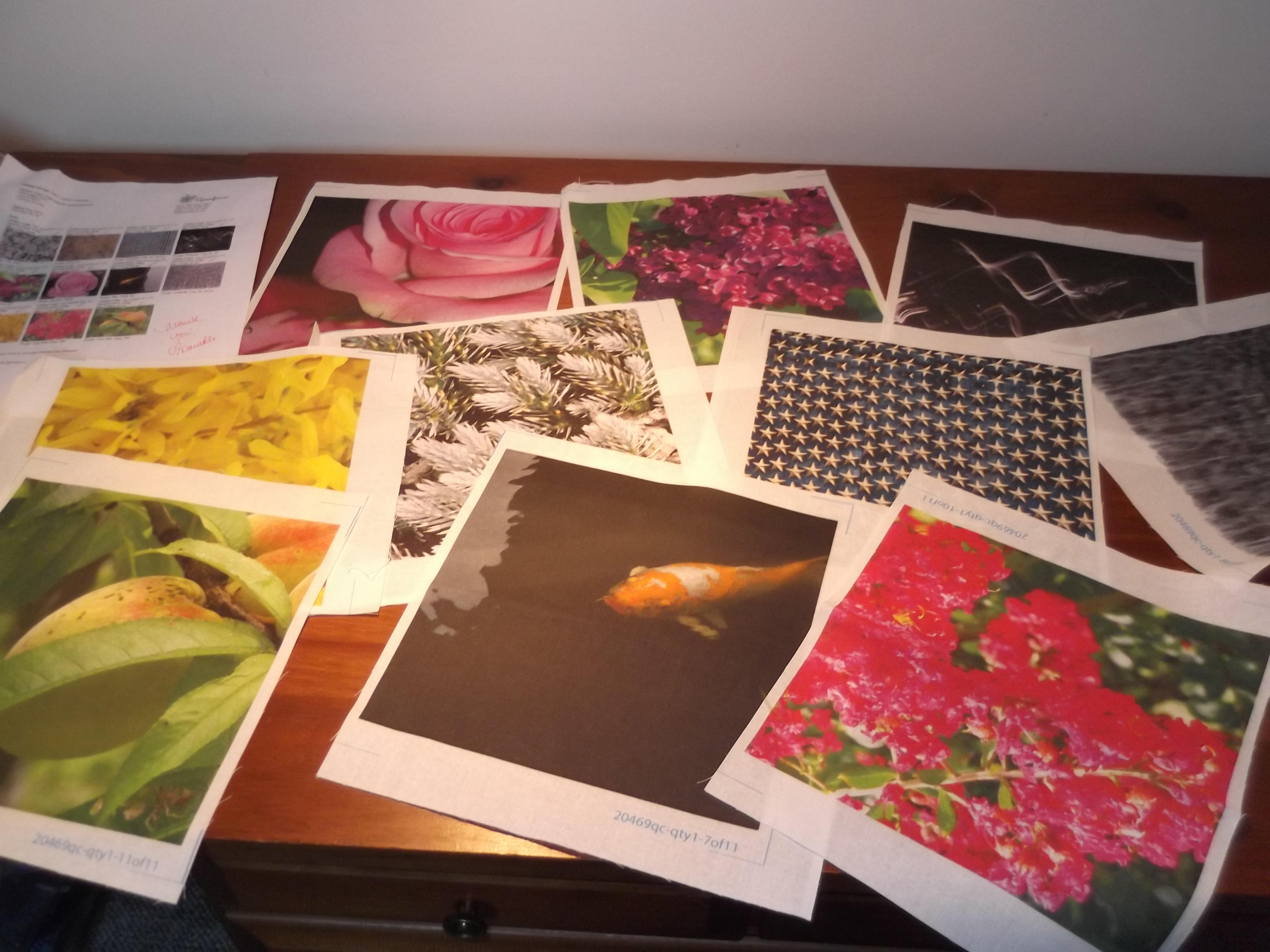 It occurred to me today that two years ago I was sitting in a waiting room and discovered Spoonflower. Spoonflower.com produces custom fabrics printed with images provided by individual customers. I did not waste much time to come up with favorite photos to see how the process worked. They require you order a swatch sample to approve of the results. My bill was $61.90. Your designs are designated for private or public availability.
