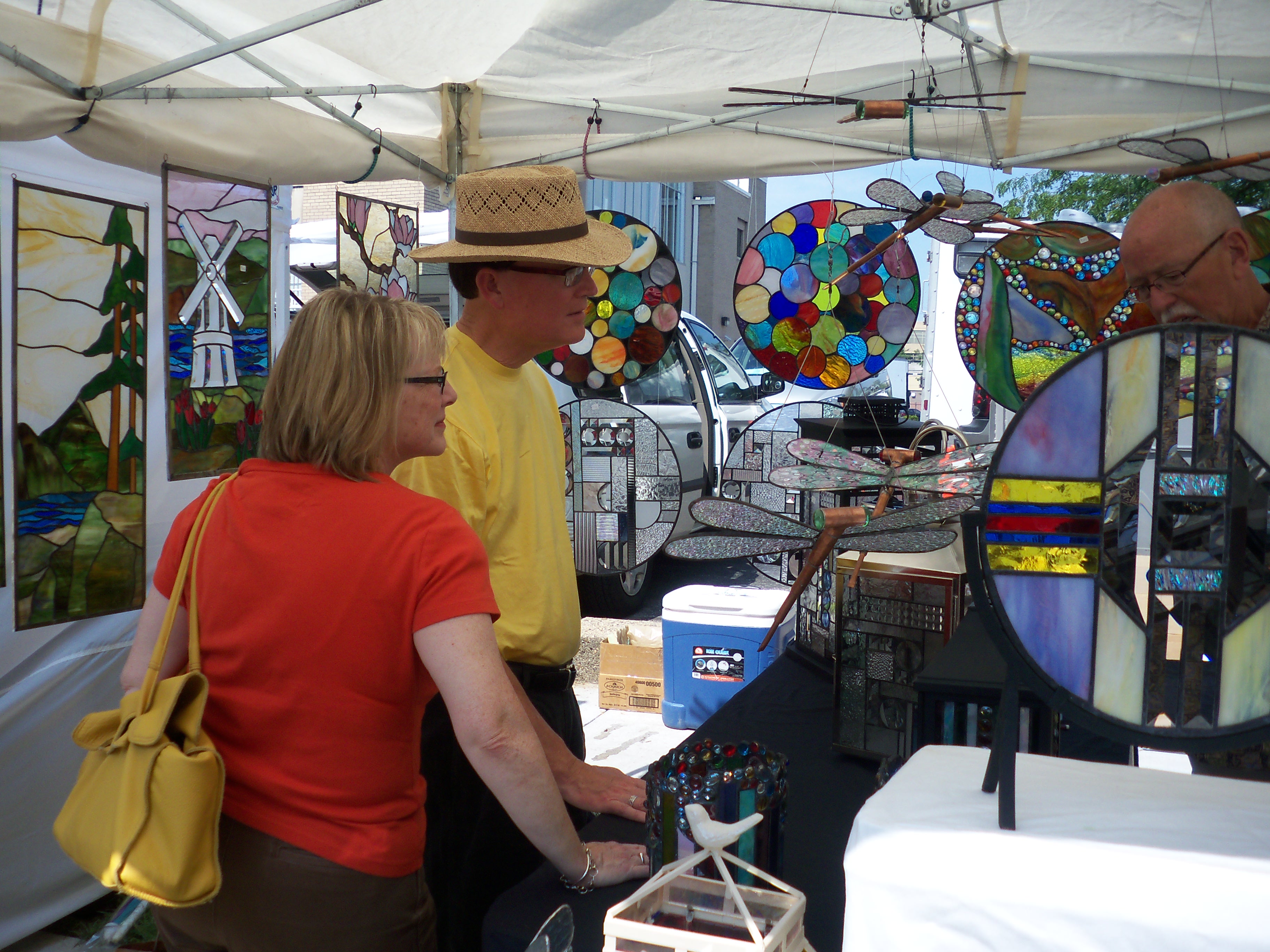 Last week I had the pleasure of returning to Talbot Street Art Show with Mary and Kyle Sonnenberg. I purchased two more pairs of soup bowls in green and purple, hummingbird yard art and a pendant.