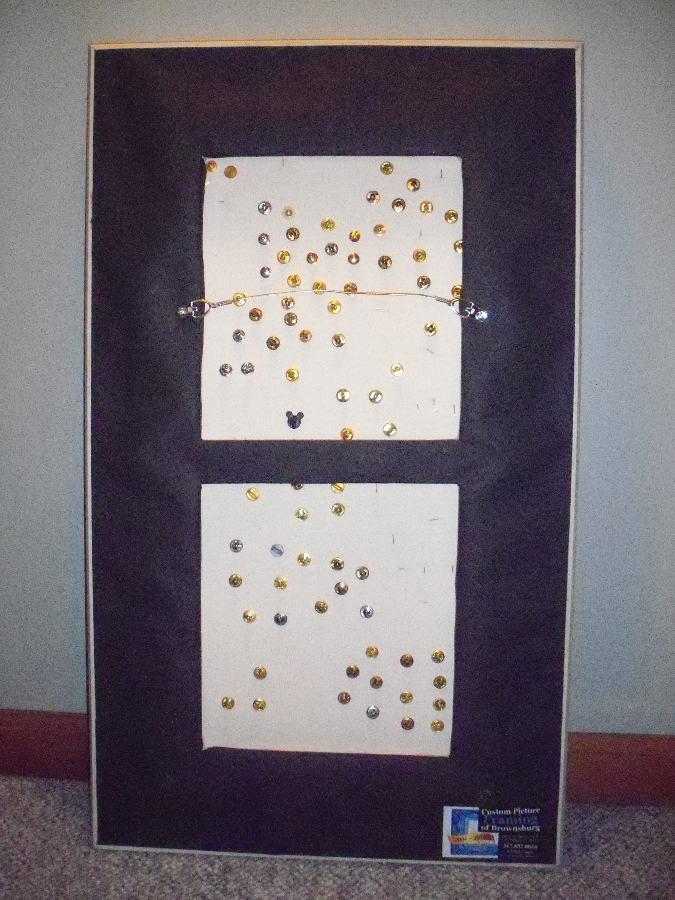 One: I purchased a ready-made frame and canvas to showcase my personal “Pininterest” collection. The pins spark a lifetime of stories from school, work, vacations and hobbies. My little problem was securing the canvas in the frame (mismatched depths), finishing the back so I can add “pins” and mount the hanging hardware.