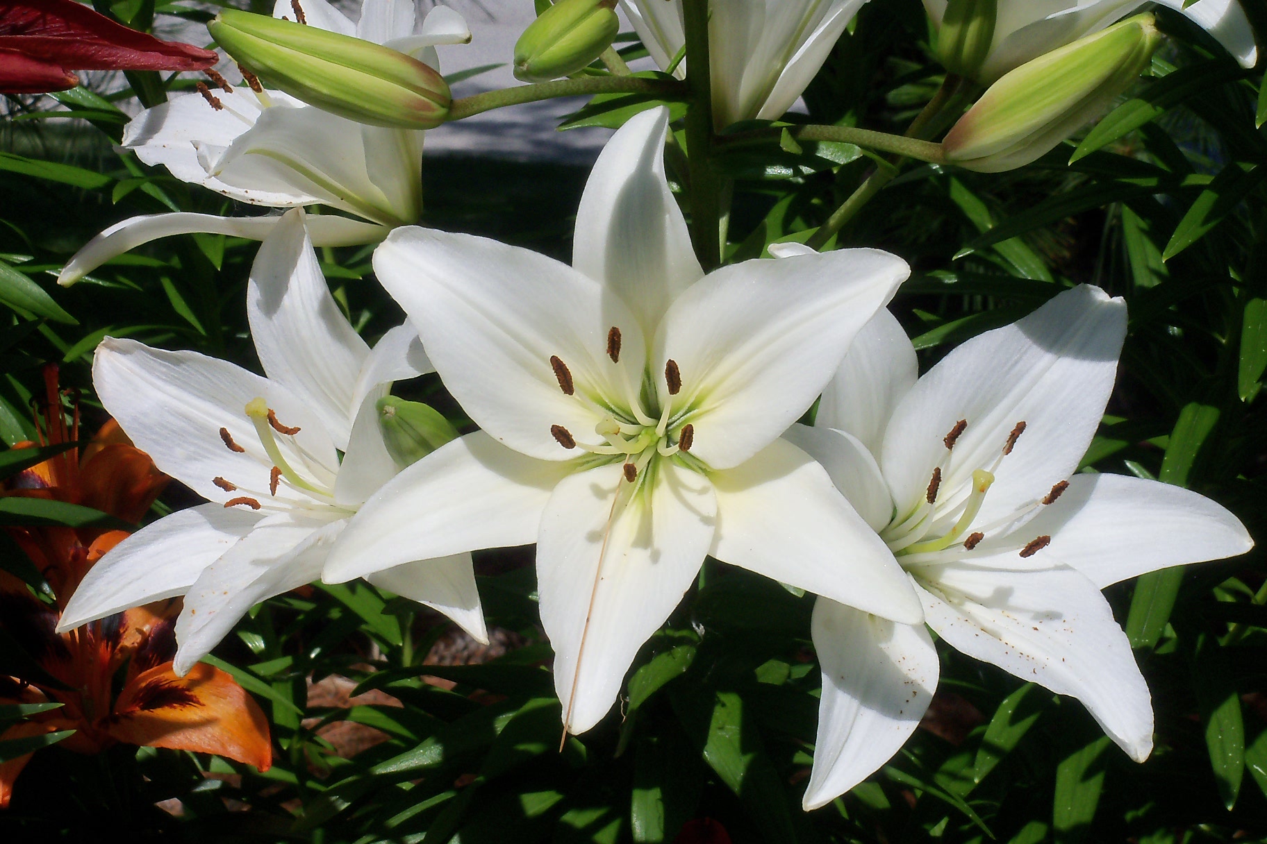 Tags: asiatic lillies, bold color, heliopsis, Oak Leaf hydrangea, petunias, summer solstice
