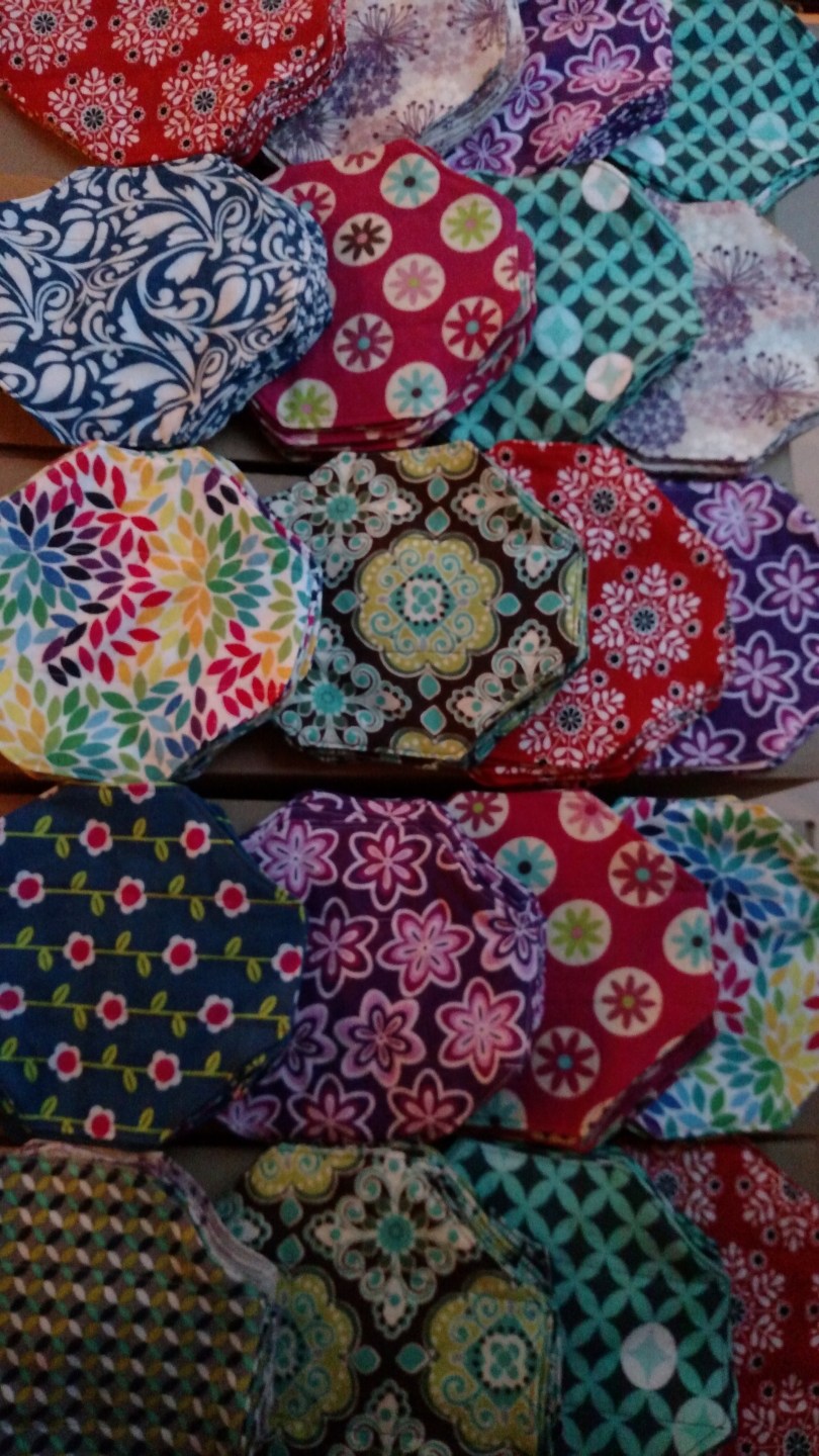 Reversible, tri-fold flannel pads. Enough for 8 pads to go into 24 kits.