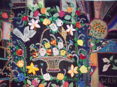 Elfcroft is a legacy best represented by this quilt made by my great-grandmother Hall in the early 1950s. Love of flowers, handmade, recycled materials, original and creative.