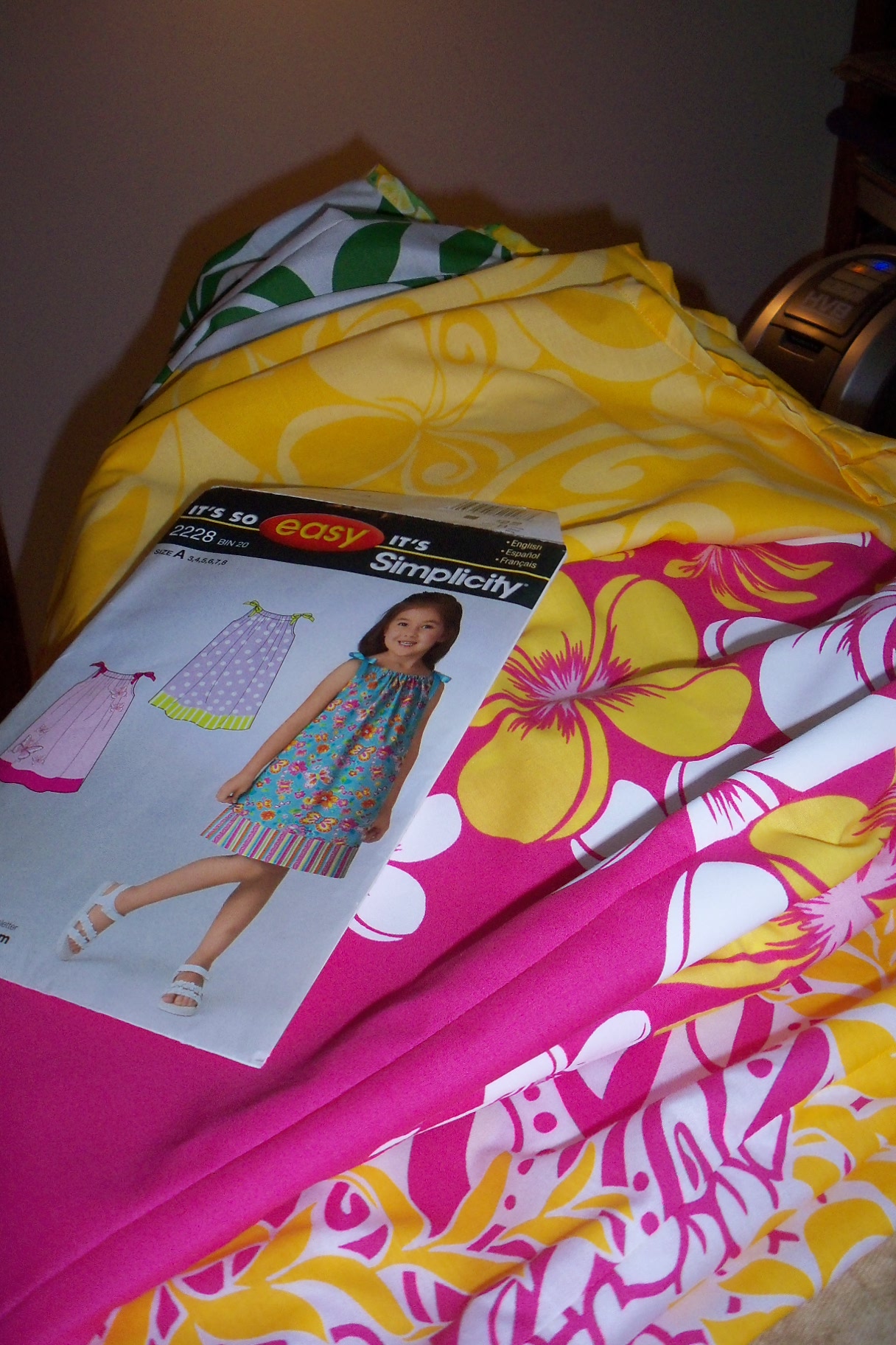 28 AugHot off the sewing machine are eight size 8 dresses of a light weight cotton. Grossbain ribbon threads through the front and back to tie at the shoulders.