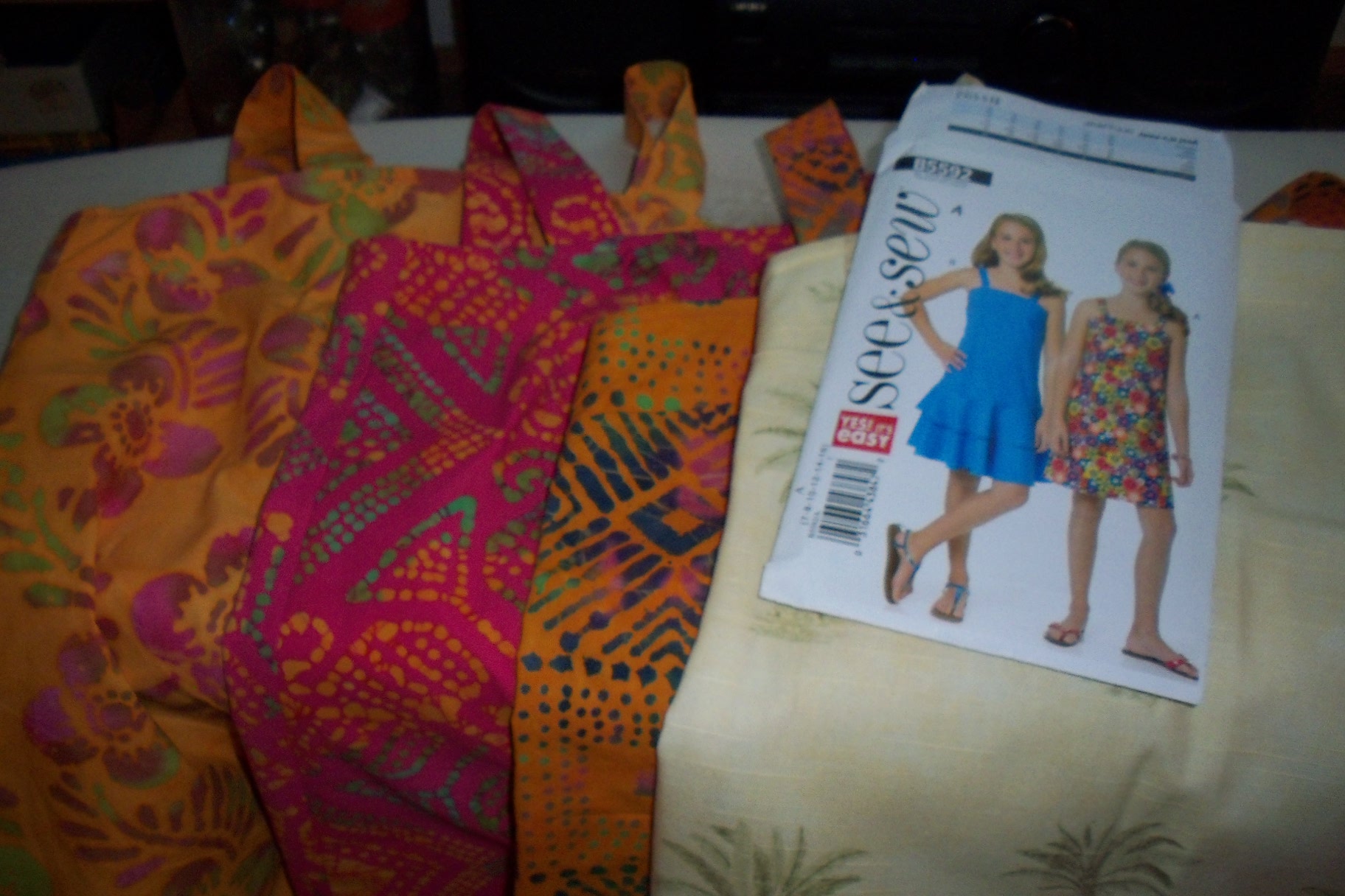 These four size 7 dresses were completed first using fabric left over from last year’s project. I prefer working with the batik print fabric.