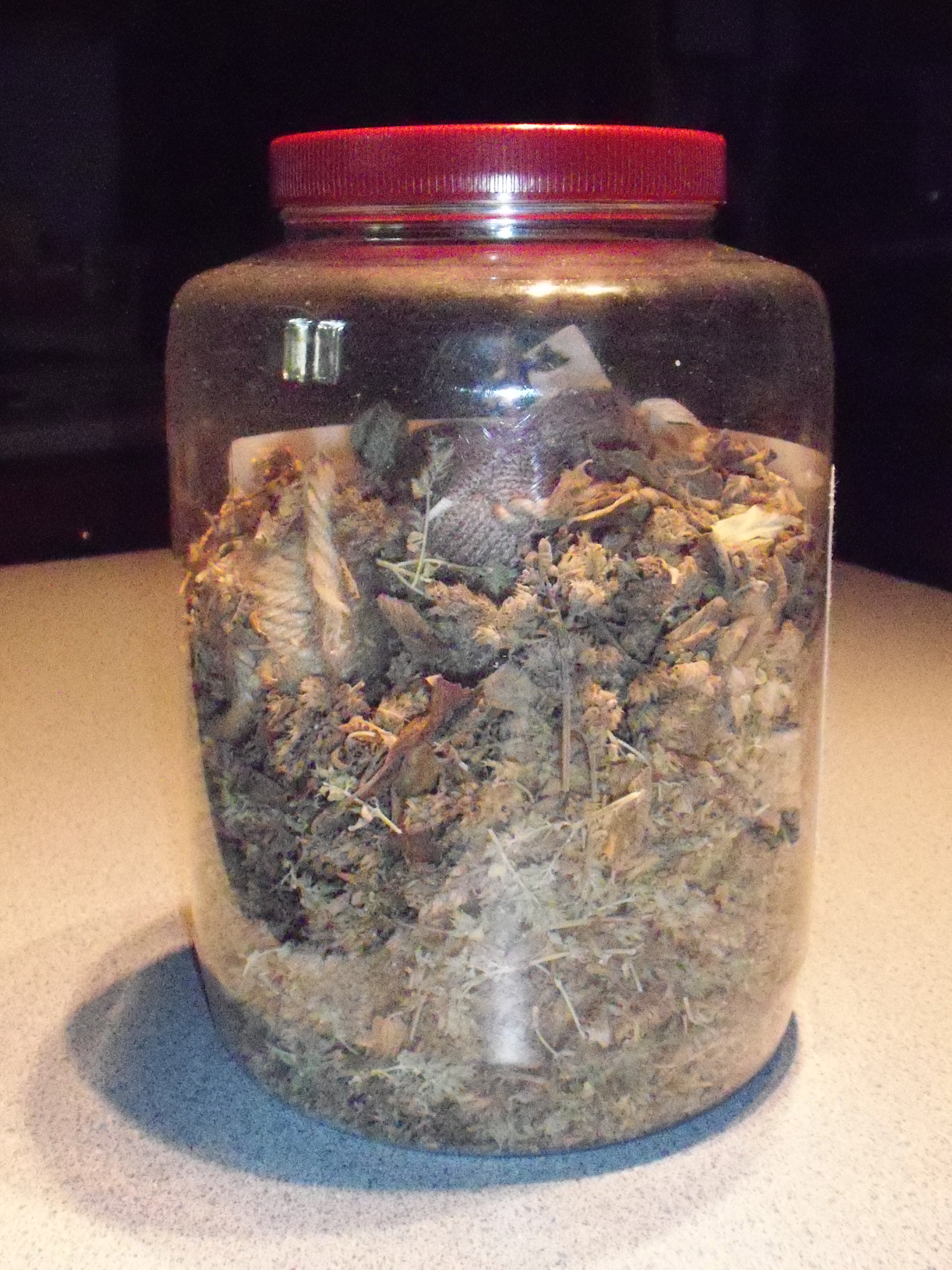 This infusion jar idea came from my friend Julie. The purpose is to refresh cat toys (often prepared with catnip scent). The toys gradually lose their scent and cats lose interest. The infusion jar works! Happy office assistants 🙂