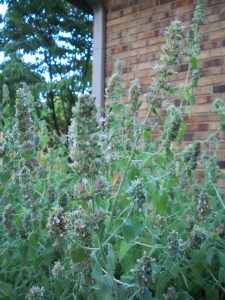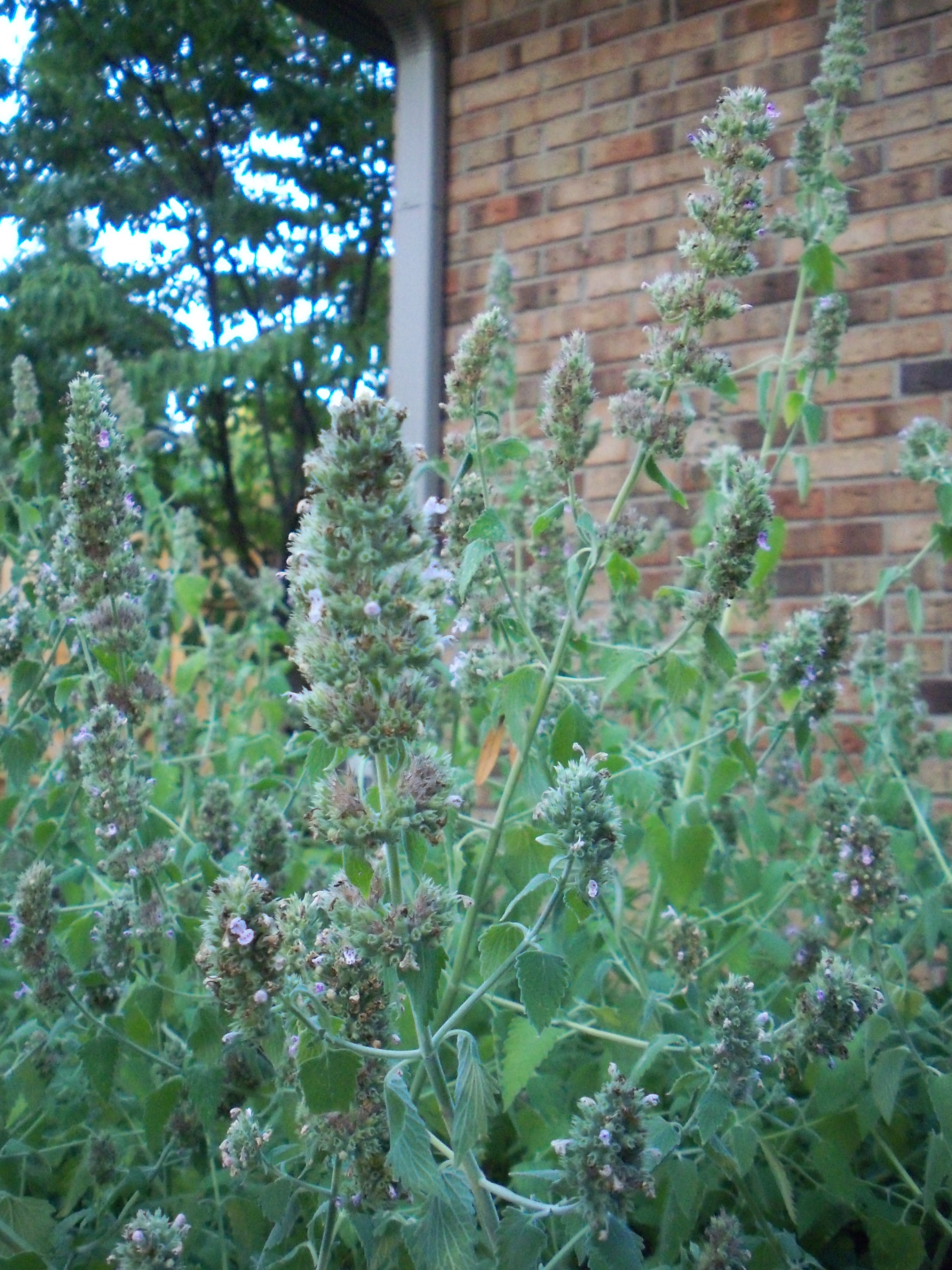 22 AugThe small lavender catnip blooms are a big attraction for bees. As I understand from a friend, it also attracts cats to the garden. I have seen one stray cat so far. My office assistants (Shelby and Eve) are offered the dried catnip.