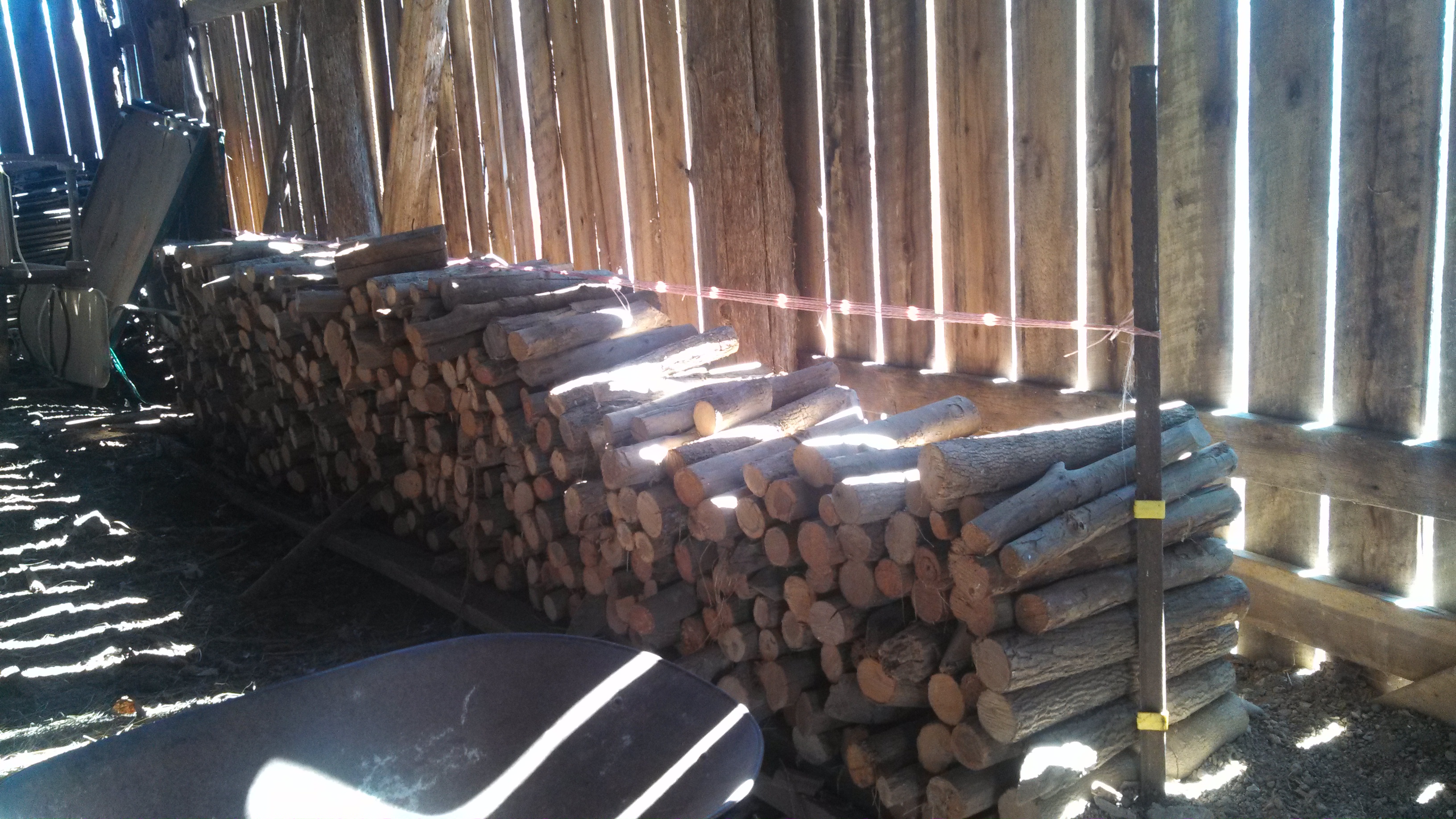 Opportunities to stretch oneself come along….like relocating firewood to help open space in a barn for more hay storage.  The subject firewood was very neatly stacked at the point where it was cut.