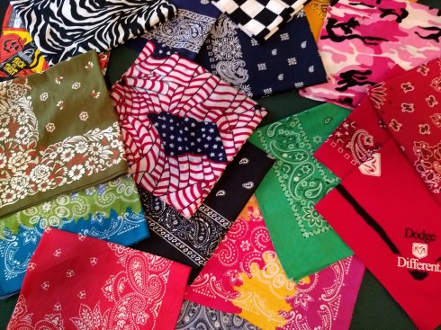 One more thing! I had this nice “satchel” style bag…marketing material from an exposition. Well…It occurred to me that a large appliqué (from my shower caddie project stash) would cover the advertising. It is just the right size to hold seven folded “blocked” shawls.