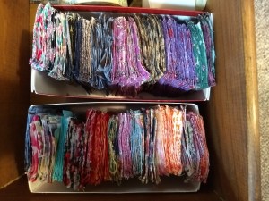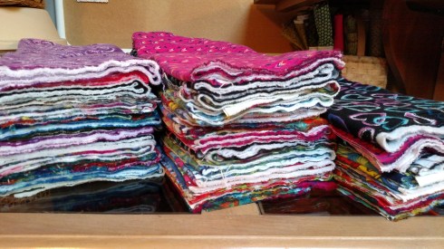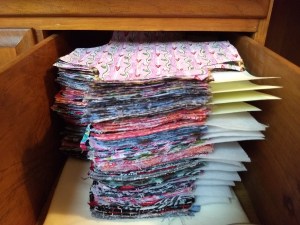 Although I still buy flannel 32 yards at time, 8 different colors/patterns 4 yards each…(this facilitates washing/drying impacting shrinkage)…which I cut into one yard lengths, which makes 10 flannel pads, which is very manageable and are placed in freezer gallon ziplock bags, which makes for easy counting and the ziplock bags are then provided in the finished DfGI kits.