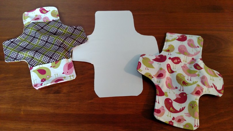 Each liner has PUL (polyurethane laminate) middle covered with colorful cotton fabrics (both sides). One side has two pockets. Snaps are added to wings as part of the kit assembly process.