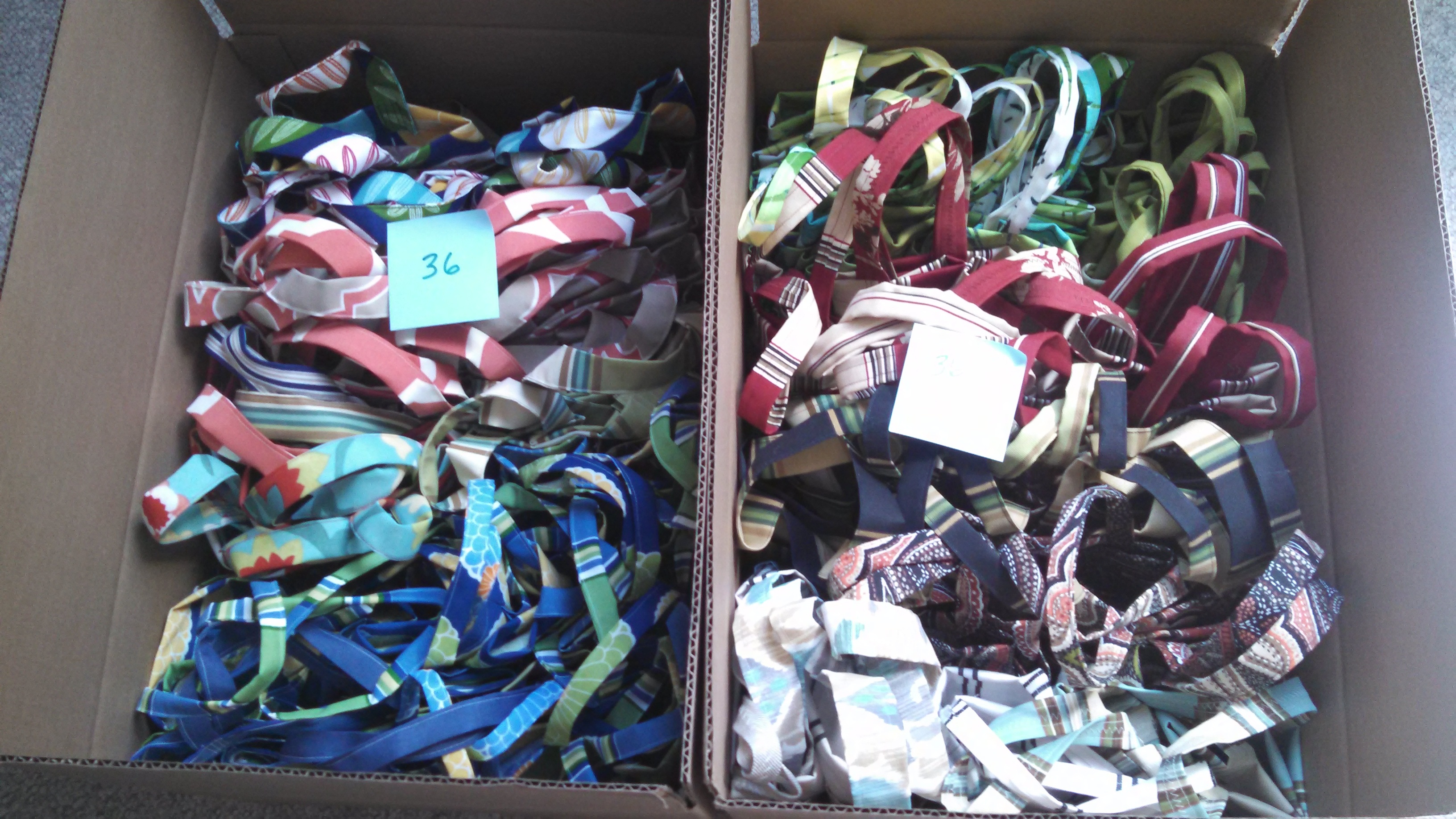 The last two years we filled back packs with socks, gloves, scarves, etc. Several years before that we filled tote bags. Our choice this year are these homemade bags. Bath products to fill the shower caddies will be provided by friends and coworkers.