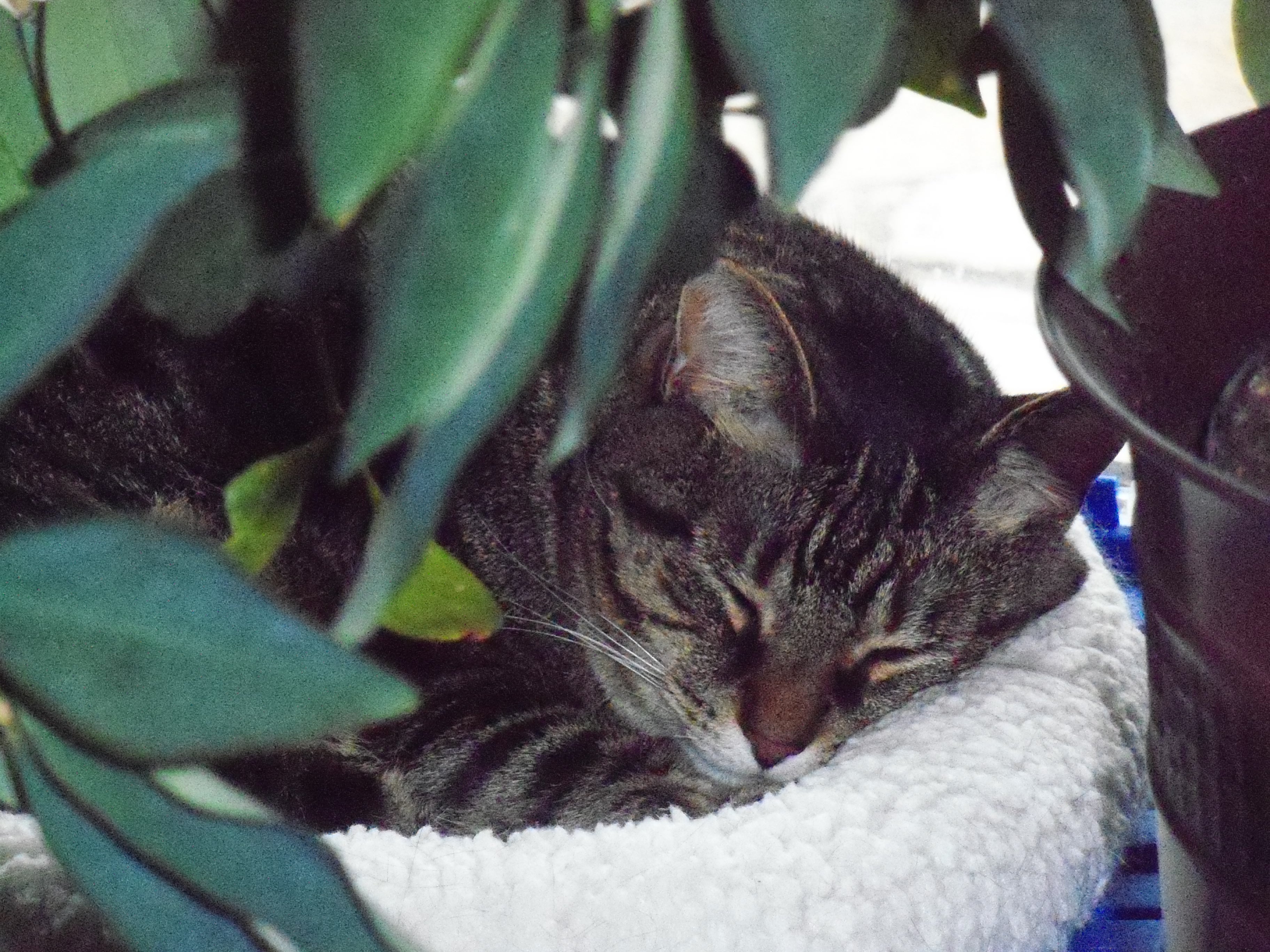 Eve still naps under the potted plant 🙂