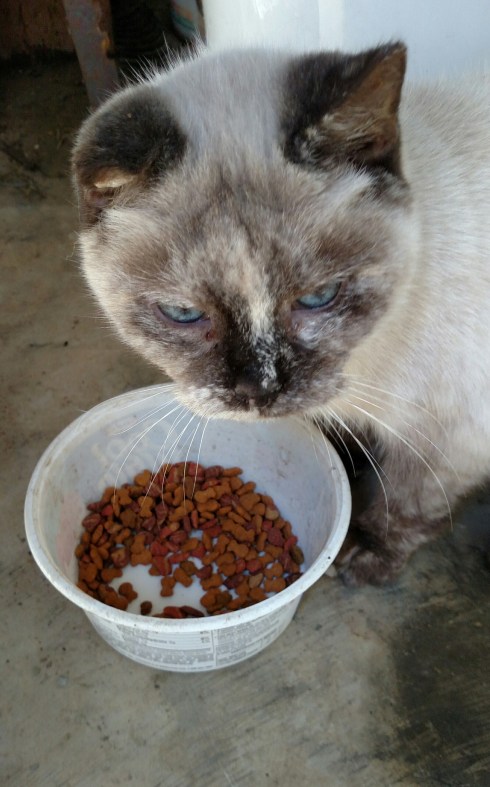 We found “Eve” on Christmas Eve 2006 in the cattle trailer on Nina Bay Farm. Apparently someone was depositing kittens in trailers parked at the Sale Barn a couple of days earlier. How’s that for a strategy to find homes for animals?