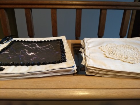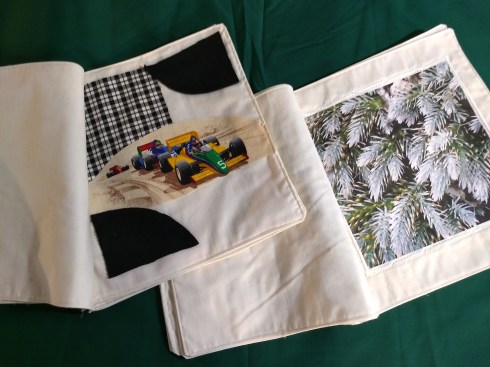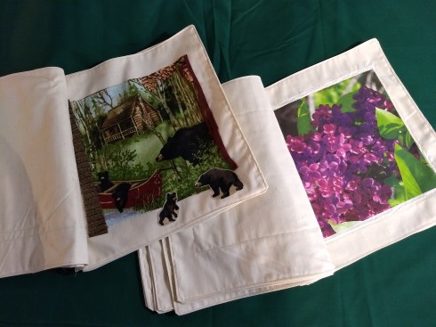 I referred to the satellite map provided by the county government website and made MANY measurements of elevation plus distance. The elevation represented by the blocks covered by green and brown fabric is 850 feet (above sea level) and the highest of the rugged terrain. The blocks covered by brown fabric represents the rugged transition from peaks to valley. The creek bed is 760 feet (above sea level) on the west end, dropping to 740 feet with over a mile length.