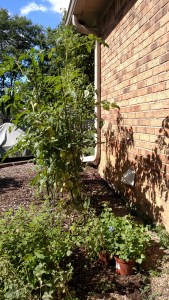 I chose very young plants this year due to the unseasonably cool weather. May need to replant. I also chose to add a path for access to the six tomato plants.