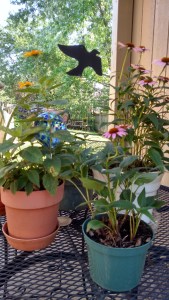 Spring mix of perennial volunteers…catnip, lemon balm, oregano and mint…an island in the garden plot. All (except the oregano) take a lot of effort to keep from taking over the garden.